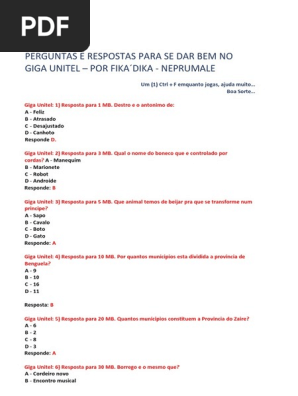 Perguntas E Respostas Do Jogo Giga Unitel Pdf. Vai a e acede aos teus conteudos! Qual o nome do boneco que e controlado por cordas?
