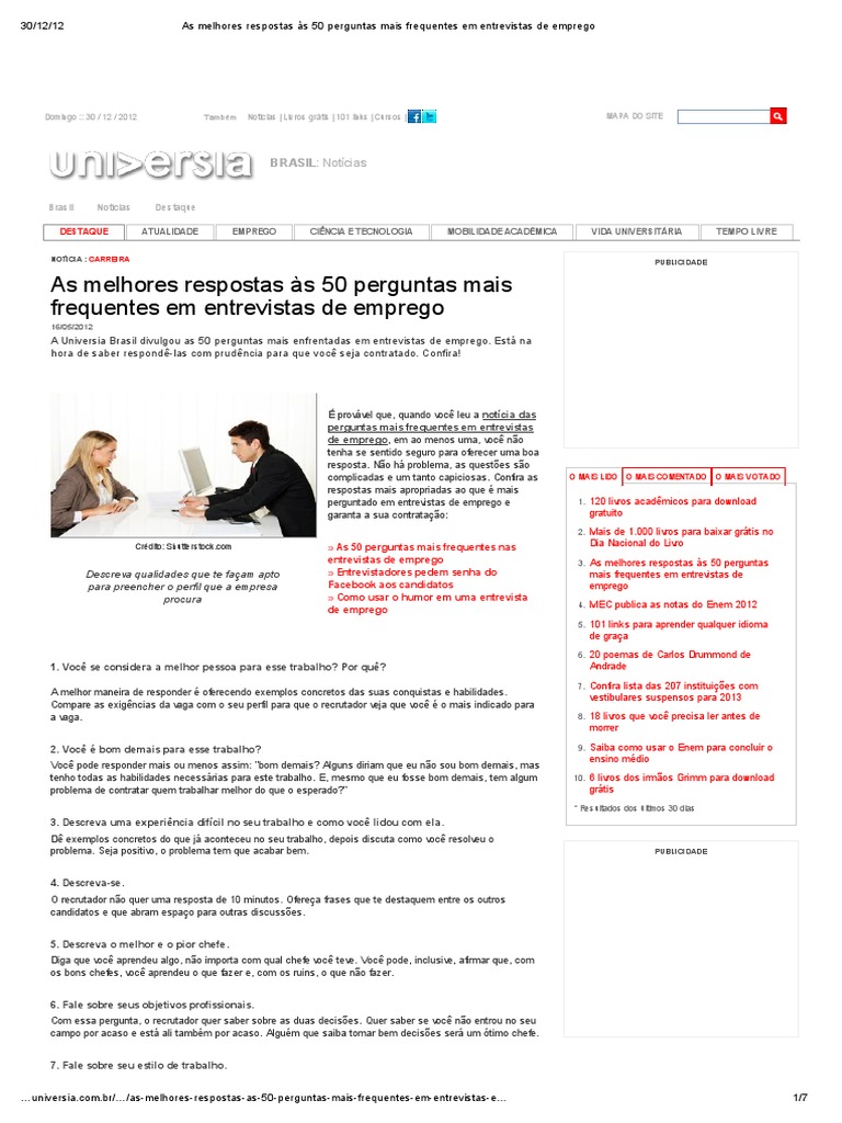 Perguntas E Respostas Mais Frequentes Em Uma Entrevista De Emprego. Esse vídeo é para lhe ajudar nos momentos mais difíceis na entrevista de emprego ! As perguntas feitas em uma entrevista de emprego não estão muito longe daquela pergunta de infância: