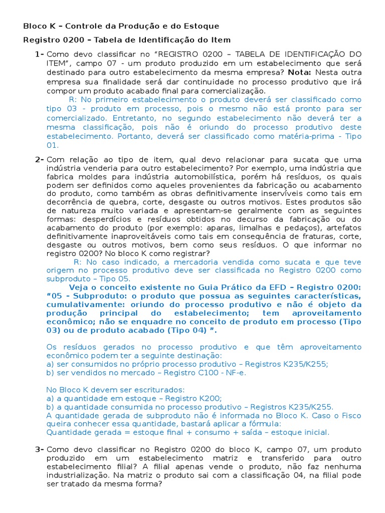 Bloco K Perguntas E Respostas. Estou desenvolvendo o bloco k(valido a partir de 2016) do sped efd, e estou com problemas para validar aparte de conversão de unidade. Perguntas e respostas com base no manual do bloco k by dmafisolli.