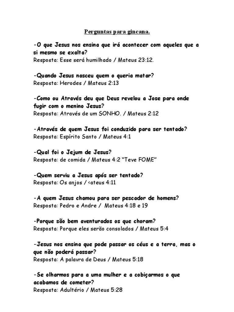Perguntas e respostas para gincana bíblica ii. Acesse também 👉 gincana bíblica 48 perguntas e 👉 81 segredos da bíblia. Também são perguntas perfeitas para uma gincana bíblica. Utilizar gincanas é uma das formas mais divertidas de ensinar e aprender a palavra de deus.